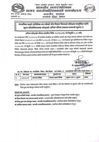 अन्तिम परिक्षाको नतिजा प्रकाशन सम्बन्धी सूचना !