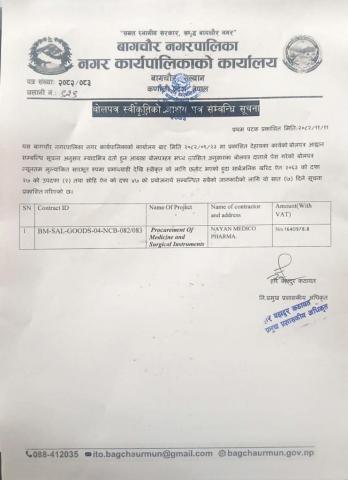 बोलपत्र स्विकृतिको आशयपत्र सम्बन्धी सूचना ! ! !