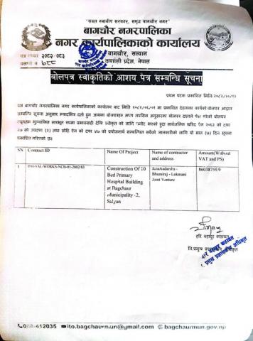 बोलपत्र स्वीकृतिको आशय पत्र सम्बन्धी सूचना।