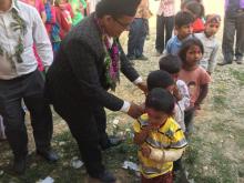 विद्यार्थि भर्ना अभियाना कार्यक्रममा नगर प्रमुख लोकमान बुढाथोकी विद्यार्थी भाइ बहिनिहरुलाई स्वागत गर्दै (२०७५ वैशाख ६)