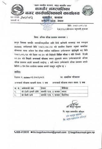 अन्तिम नतिजा प्रकाशन सम्बन्धमा ।