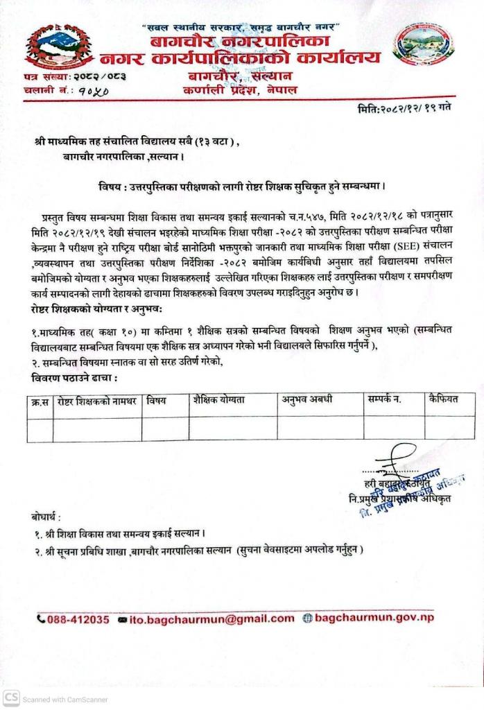बागचौर नगरपालिका सल्यानको २०८०/८१ को Lisa नतिजा हेर्न यहाँ Click गर्नुहोस ।