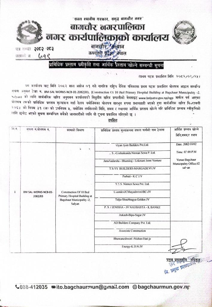 प्राविधिक प्रस्ताव स्वीकृत तथा आर्थिक प्रस्ताव खोल्ने सम्बन्धी सूचना !