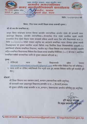 रिक्त पदमा स्थायी शिक्षक सरुवा सम्बन्धि सूचना !!!