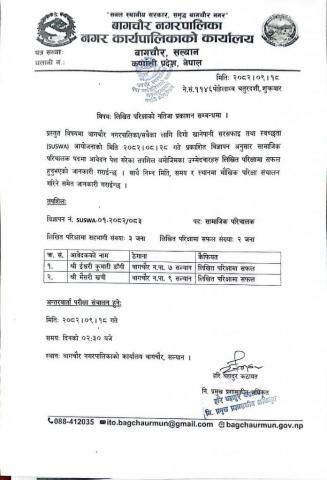 बागचौर नगरपालिका सल्यानको २०८०/८१ को Lisa नतिजा हेर्न यहाँ Click गर्नुहोस ।