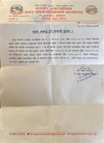 सडक अवरुद्ध हुने सम्बन्धी सूचना !